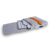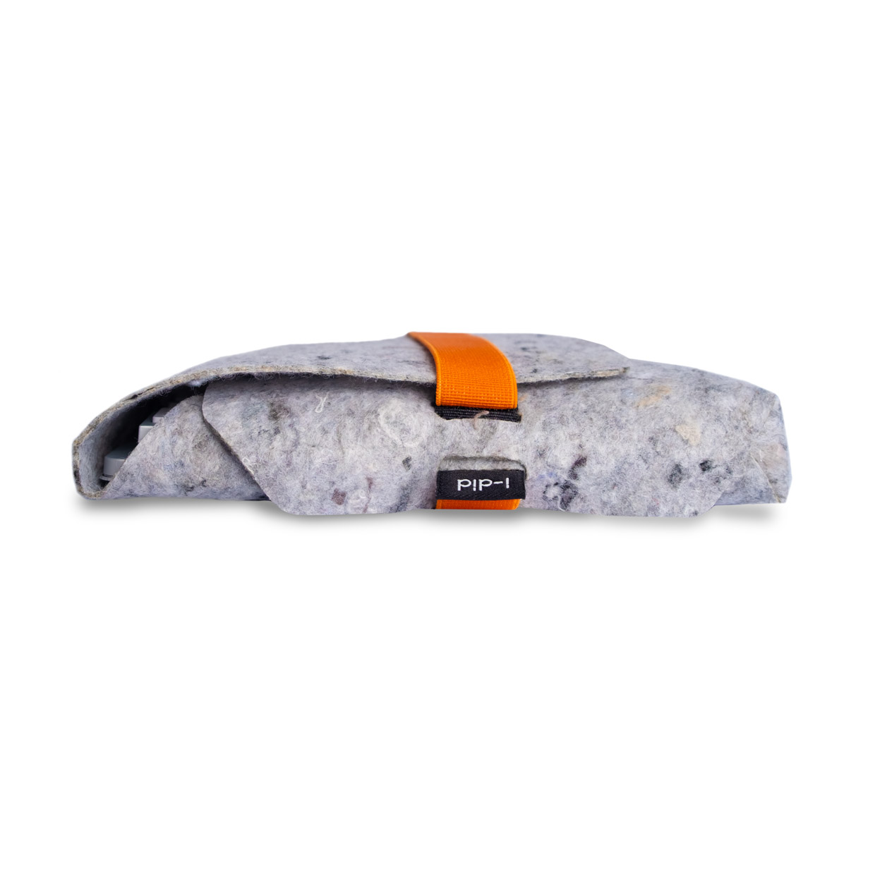 This protective pouch is made of soft, sturdy felt made from recycled textiles. The R-Go Pouch is square and compact, the two halves of a Split keyboard fit perfectly inside it lying against each other. An orange elastic band closes the pouch and immediately gives it a trendy look. Specially designed to carry your Split keyboard easily and safely: ergonomics in the pocket!