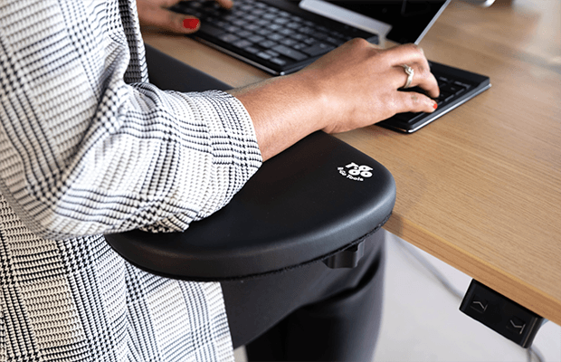 The R-Go Ergonomic Armrests provide optimal support for the forearms when working at a computer. The curved shape allows you to slip in easily and supports your arms close to your body. This promotes an upright working posture and relaxes the shoulders. The armrests are padded, making them soft and comfortable to the touch.
