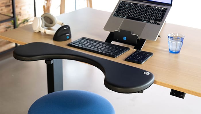 The R-Go Ergonomic Armrest provides optimal support to the forearms during monitor work. The curved shape allows you to slide in well and support the arms close to the body. This stimulates an upright working posture and provides relaxation in the shoulders. The armrest is padded and therefore feels soft and comfortable. This armrest fits almost all desktops.