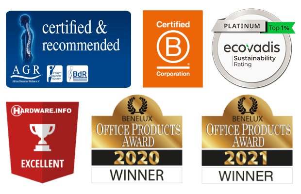 We strive for ergonomic solutions that are suitable for everyone, regardless of your height, posture and left- or right-handedness. Our new products are assessed by external ergonomists and a test panel of users. Since June 2022, our ergonomic mice, Break keyboards, Riser laptop stands, monitor arms, document holders and Treepod laptop and tablet stand are also AGR certified. In addition, we won the Benelux Office Award for the Break software and our Viva laptop bag.