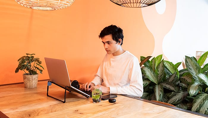 This ergonomic laptop stand raises your laptop up to eye level. So you sit in an upright position in front of your screen and prevent annoying neck and back pains.